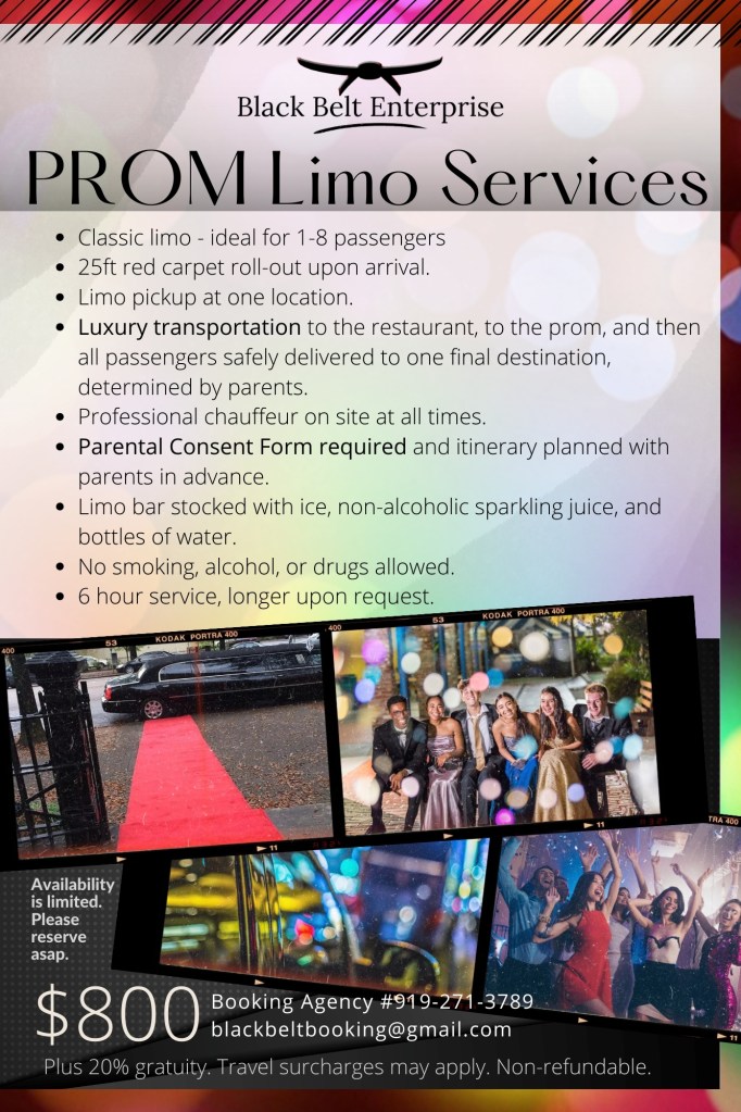 - 🌟 Roll out the red carpet—literally. Make a grand entrance with our 25-foot red carpet rollout upon arrival. Perfect for weddings, galas, VIP events, or just making your special day feel even more spectacular. Step out in style, strike a pose, and let the cameras flash—it’s your moment to shine, and we’re here to set the stage. Because when you ride with Black Belt Enterprise, you’re not just arriving—you’re making an entrance.